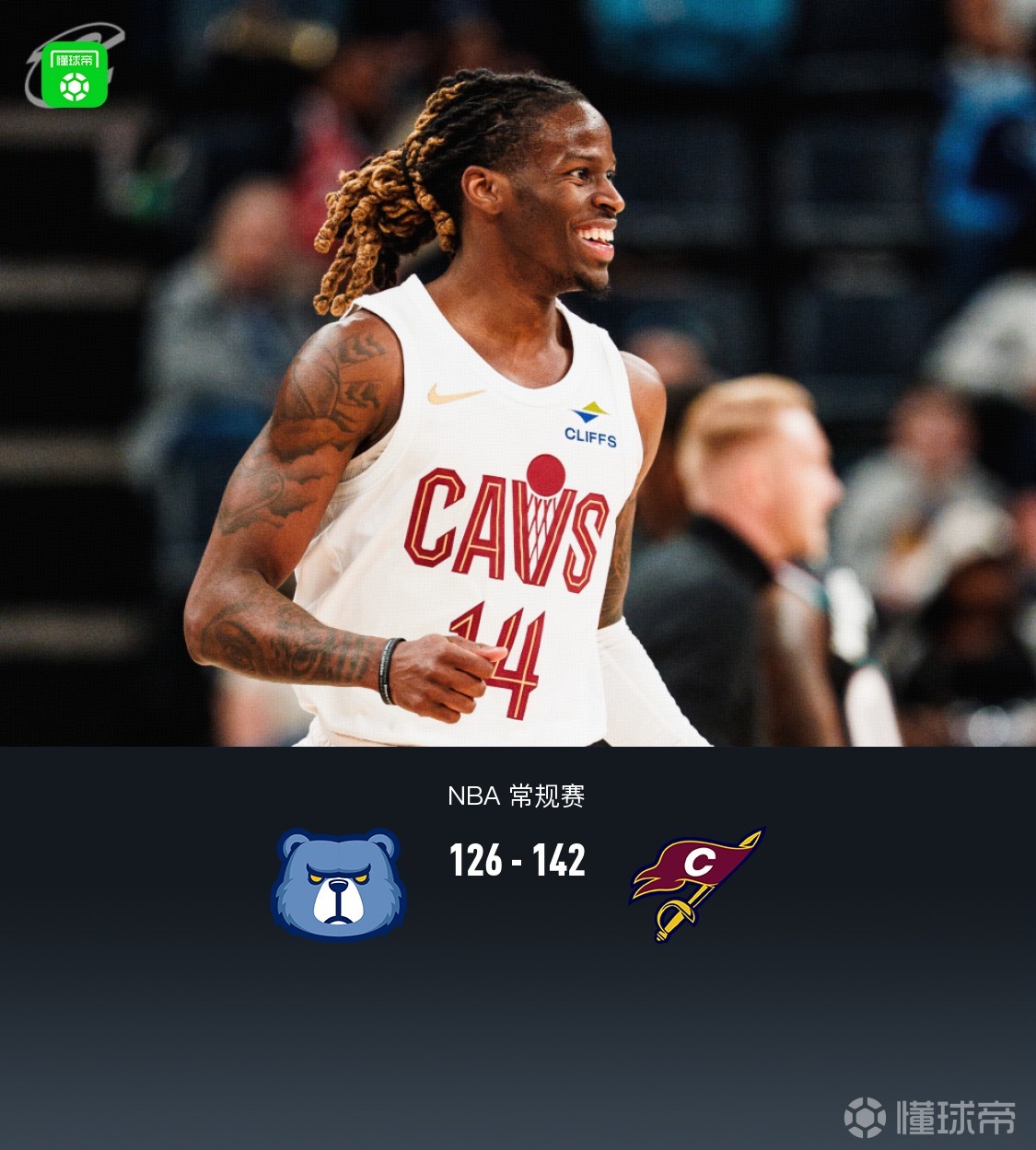 第四节灰熊阿达马-巴尔拿下14分,骑士埃文-莫布利拿下10分,最终灰熊126-142不敌骑士