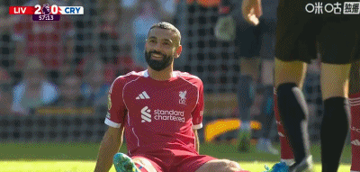 穆罕默德-萨拉赫下半场因腘绳肌伤势被迫伤退。