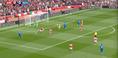 第34分钟,加布里埃尔造瑞安·克里斯蒂手球送点!哲凯赖什点射破门,阿森纳1-1扳平!