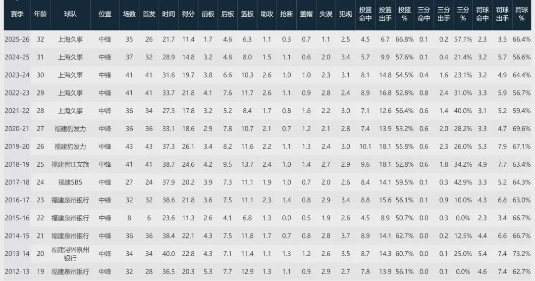 王哲林出生于1994年1月20日,32岁已经开始走下坡路了。2022-23赛季,他在上海男篮场均21.8分11.7篮板2.6助攻。2023-24赛季,场均19.7分10.3篮板2.6助攻。2024-25赛季,场均14.8分8篮板1.5助攻。数据可以说是一路下滑!